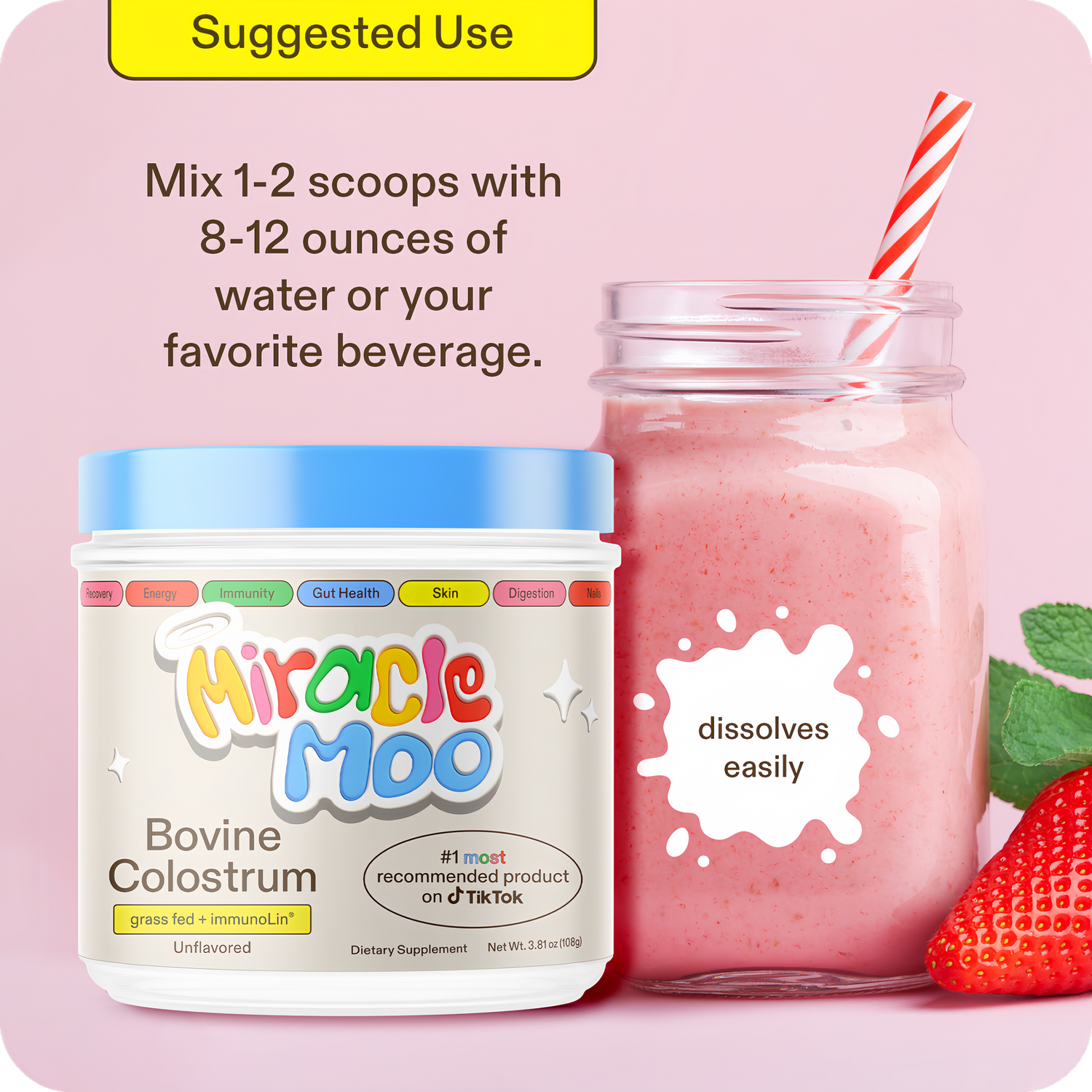 Simply mix a scoop of MiracleMoo into water, smoothies, or your favorite recipes.